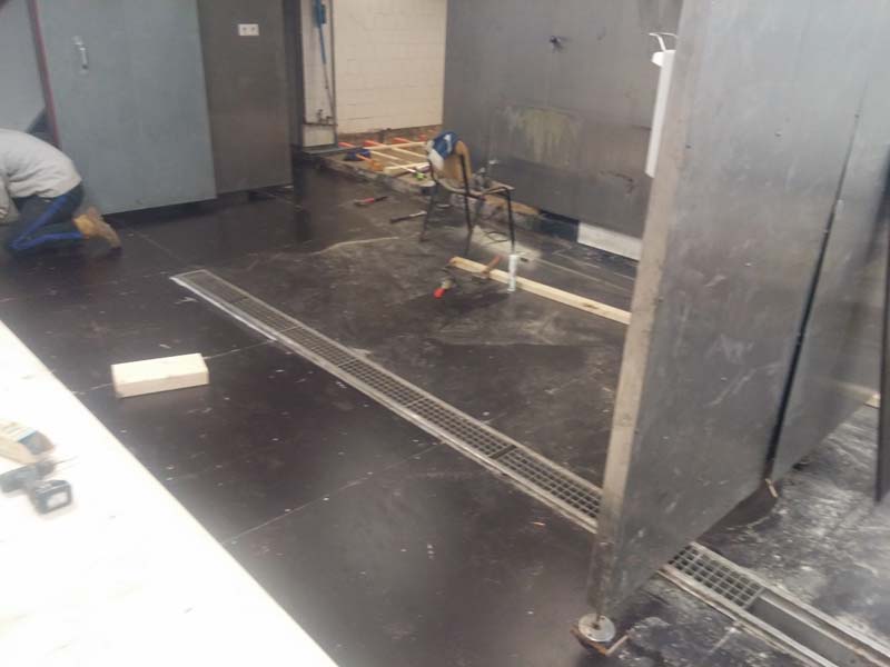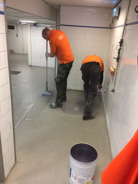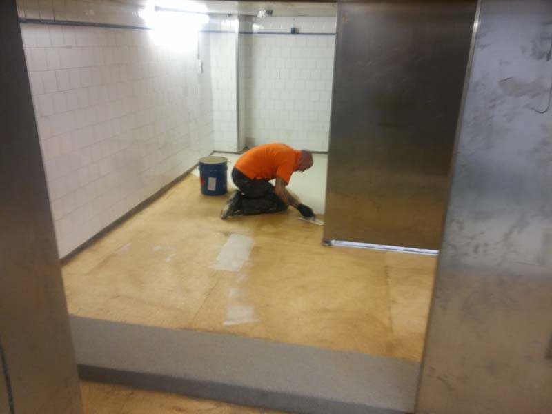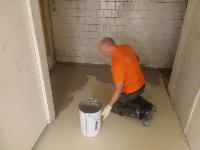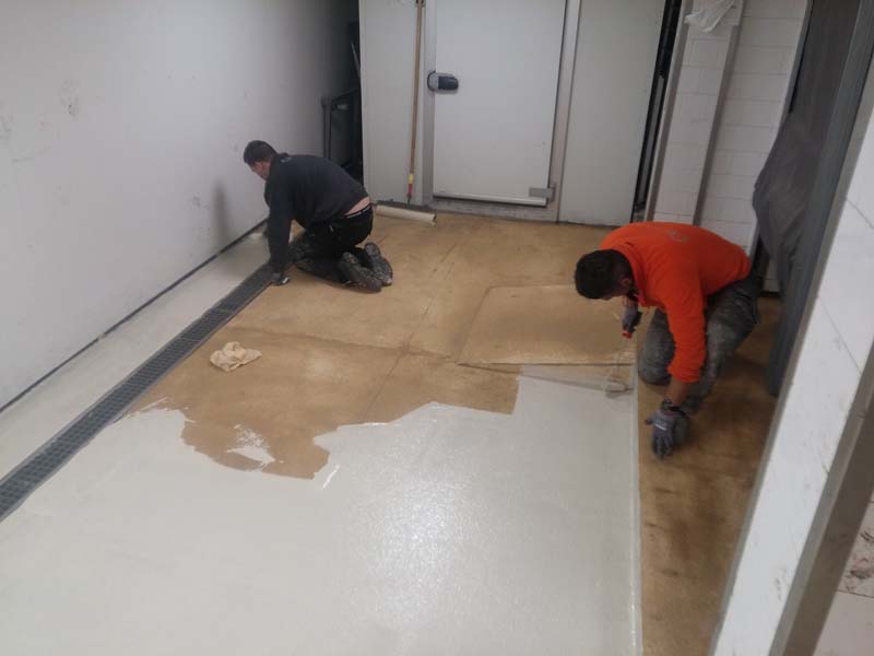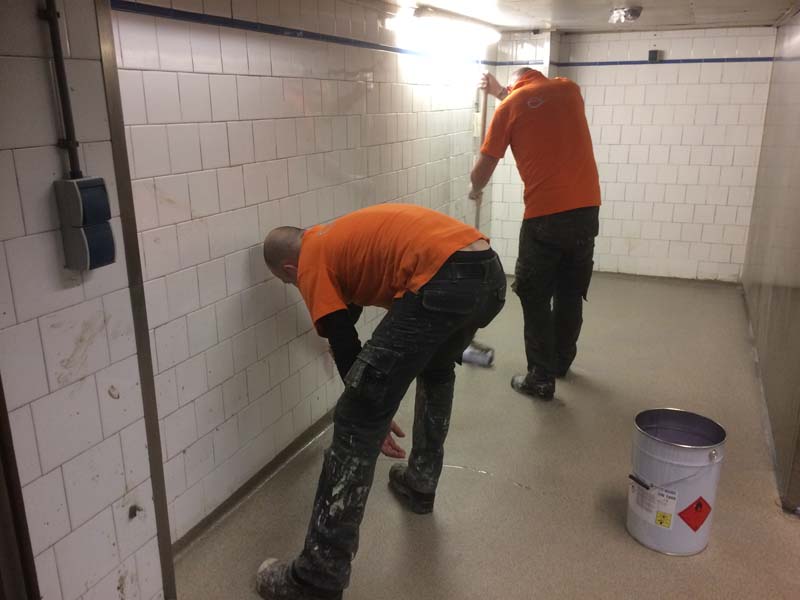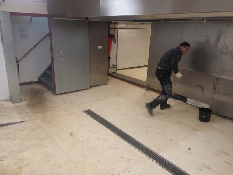Aanbrengen van de kunststof gietvloer in de horecakeuken