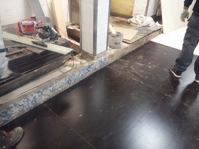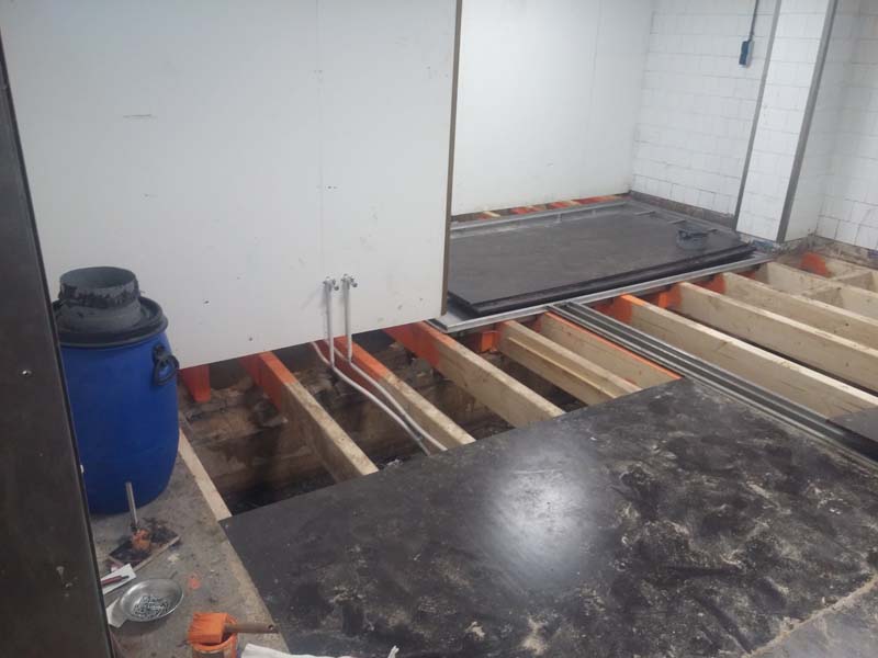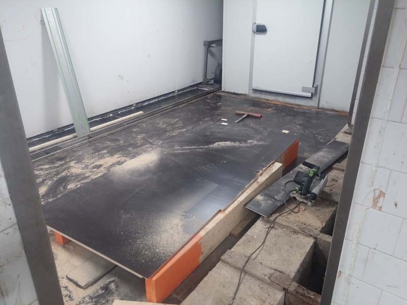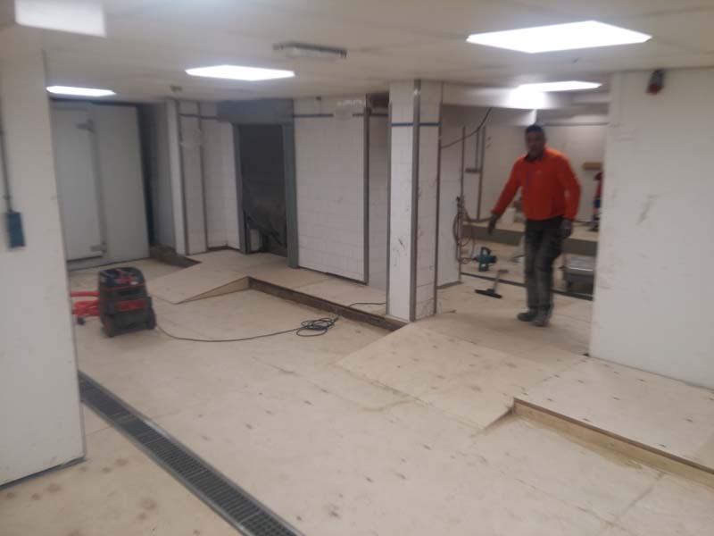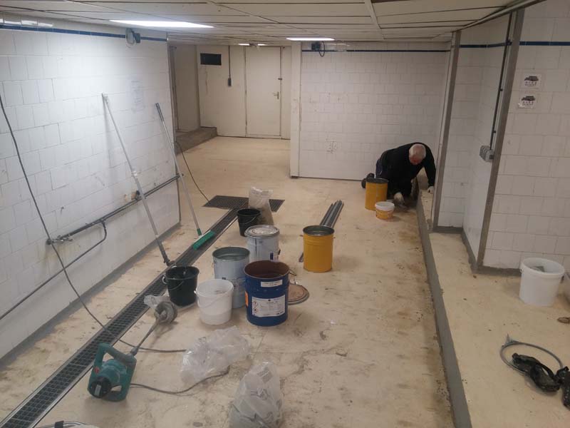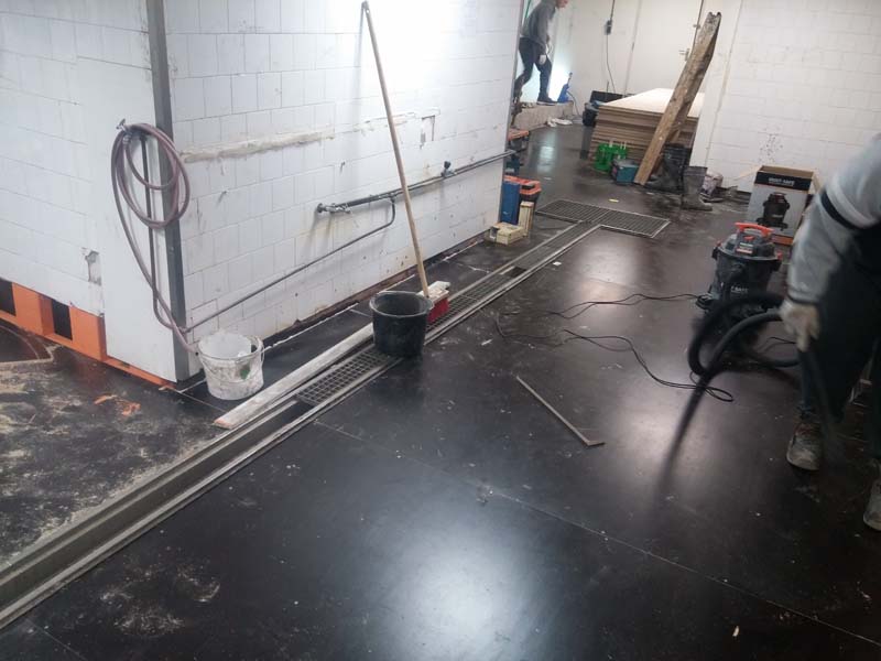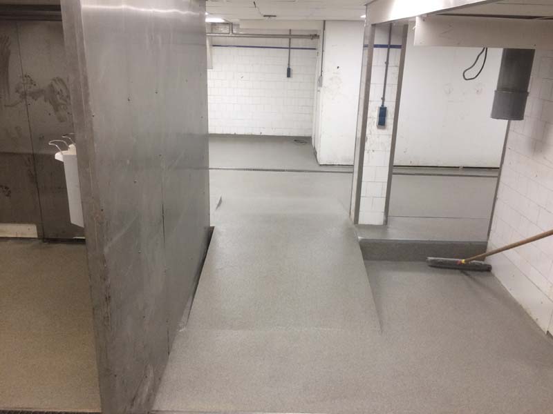 Aanbrengen van de kunststof gietvloer in de horecakeuken